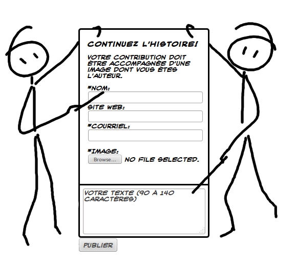courriel, écrivez votre texte (90 à 140 caractères) et joignez-y une image ! Si vous avez un site web, vous pouvez l'inscrire et votre nom sera